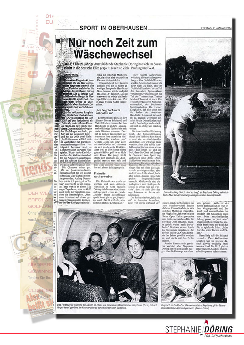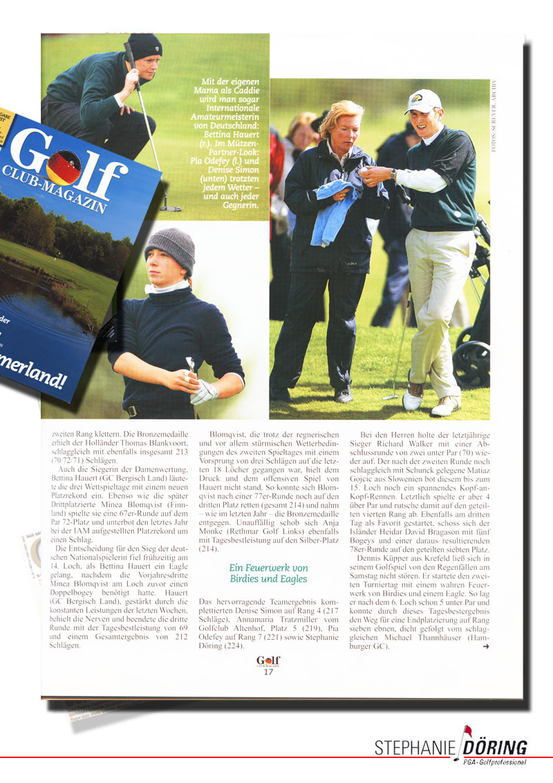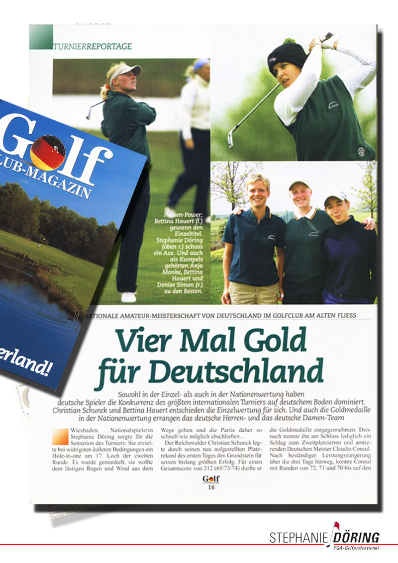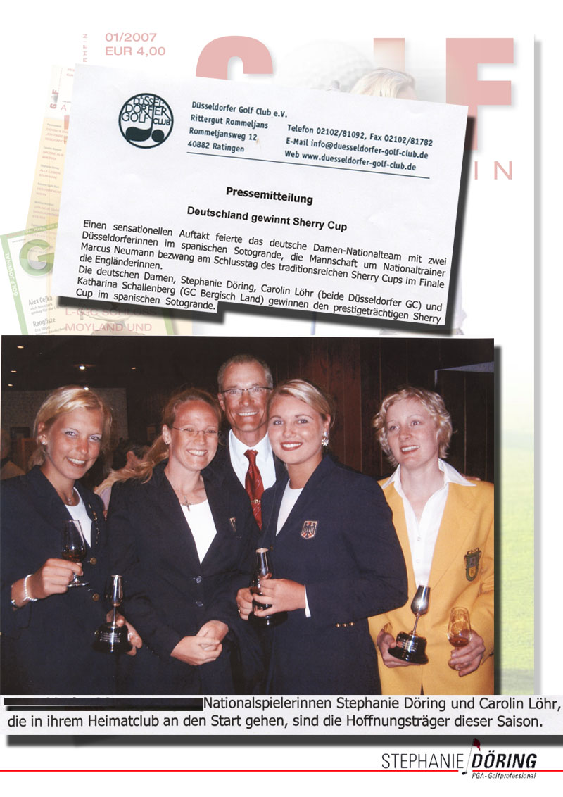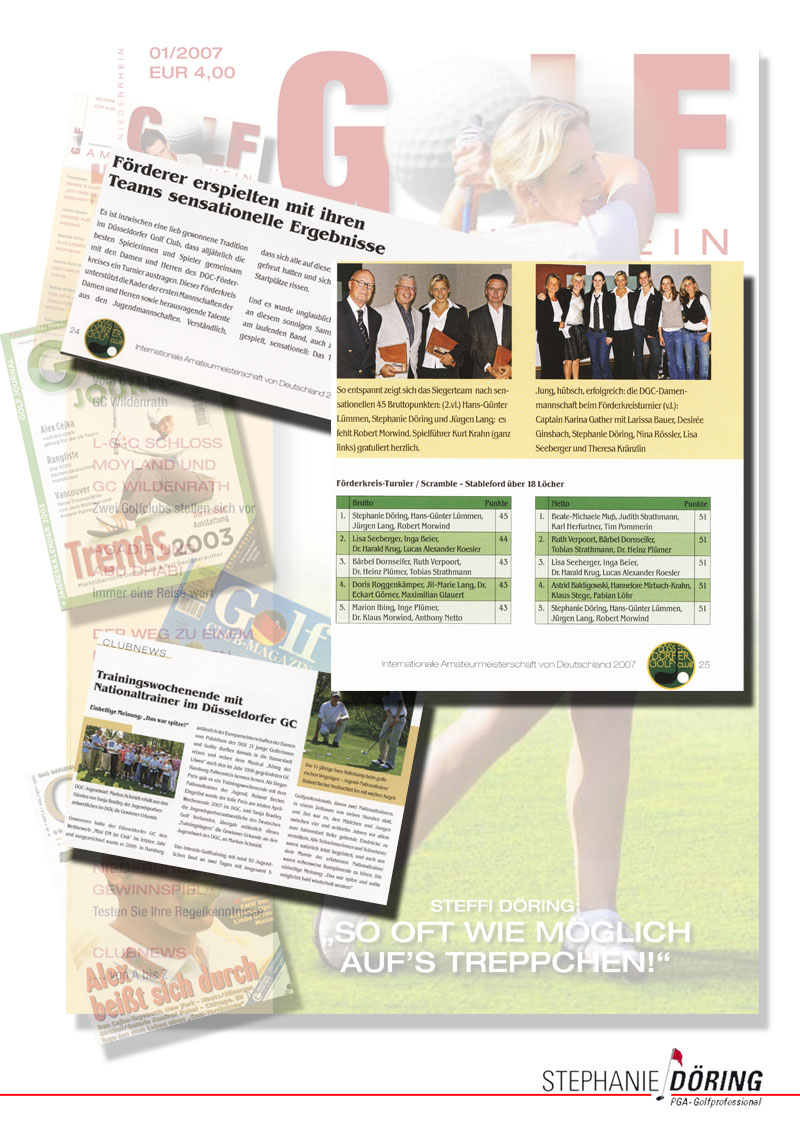 Hallo, mein Name ist Stephanie Döring. Ich spiele bereits seit 1994 Golf und es ist ein wesentlicher Bestandteil meines Lebens. Der Spaß an der Bewegung, die Konzentration und gleichzeitig die Kraft sowie die Faszination, die dieser Sport von Anfang an auf mich ausübte, veranlasst mich dazu, auch anderen diesen herrlichen Sport zwanglos, und mit Freude beibringen zu wollen.